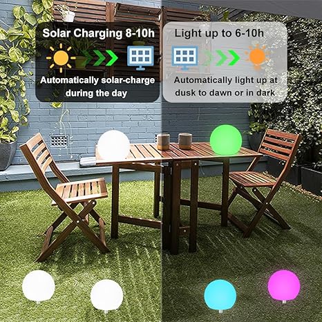 - Durability & Versatility: Solar glow ball for garden is made of PE, stable & durable. Multi-color functionality allows for visually stunning decoration, create a fun yet relaxing ambience to your home. Is a great decor for lawn, patio, yard, pathway, camping or party, Its versatile design make it an ideal choice for elevating your outdoor space, also a perfect present for kid, parent & friend