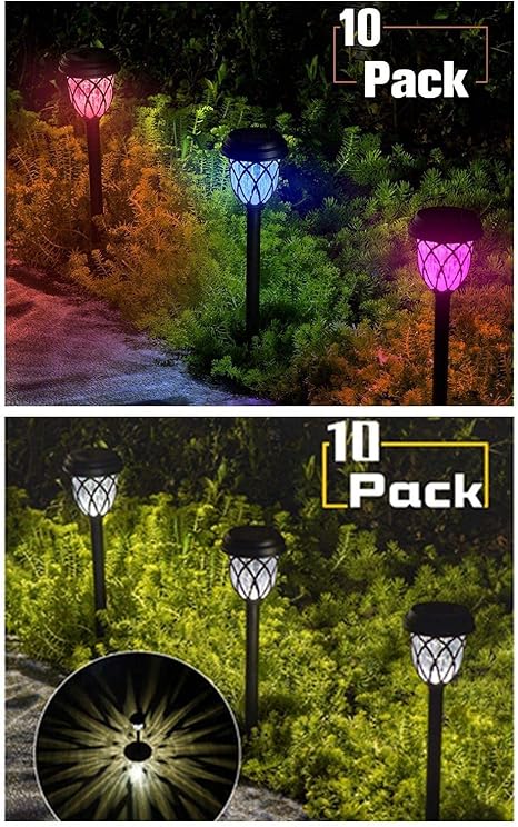 10 White and 10 Color Changing Solar Lights for Pathway Decor