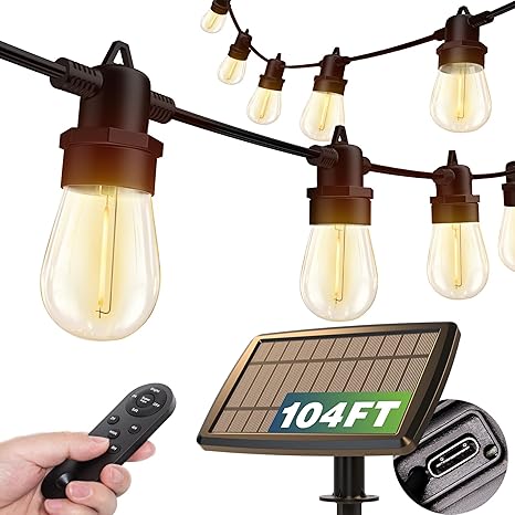 - True 98FT Long Sting Lights: All 98FT string lights on the market are 2 separate strings of 48FT, while our 98FT string lights are 1 string alone. It avoids solar panel installation 2 times and is easier to control with only 1 remote control.