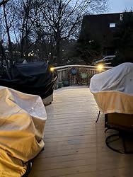 I’m only getting 4-5 hours of light after sunset, which is easily enough time in the summer but I wish it was longer in the winter when the sun sets 3 hours earlier. The unit is completely sealed so you cannot change the battery to one with higher capacity. The on/off switch has a rubber or silicone weatherproofing boot over it to prevent water from getting in there. Double-sided tape is included to stick them to your steps. Unfortunately there are no holes to secure them better with screws to wood or composite deck steps.