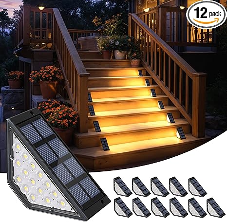 - 【Stylish and Modern Outdoor Solar Lights】The INCX Series Triangle Solar Step Lights feature a 45° angle solar panel for optimal energy absorption, ensuring maximum brightness. Perfect for illuminating outdoor stairs, steps, fences, and more, solar stair lights outdoor for warm white emits a soft and cozy glow, creating a comfortable and relaxing atmosphere.