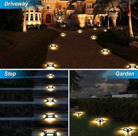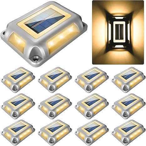 - 【Unique Design】CREPOW Solar deck lights is made of aluminium alloy and Rechargeable solar panels. Each light has 8 lensed LEDs for greater brightness and stability. Unique product shape, Widely used in driveways, decks, roads, docks, footpaths, gardens, path, walkways, steps, stairs, etc.