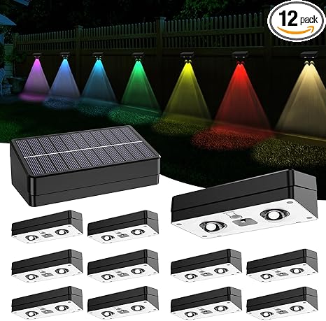 - 【10 Lighting Colors & 12 Modes Solar Fence Lights】Decorate your outdoor areas with our RGB fence solar lights! With 10 vibrant colors and 12 lighting modes, you can easily create the perfect atmosphere. Warm White are ideal for everyday lighting, while the RGB modes add lively colors, perfect for festive decorations or special occasions. These fence lights are great for fence, patio, backyard, garden, stair, and deck, and are eco-friendly, adding a delightful touch to your outdoor decor