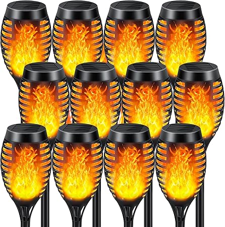 12 Pack Solar Torch Lights with Flickering Flame for Outdoor Use