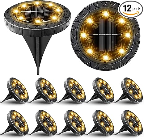 - ♻【Upgrade Premium Materials】Classic disc-shaped garden lights solar powered waterproof uses thickened and corrosion-resistant ABS material that is resistant to pressure and scratch,which means the outdoor solar path lights will not be damaged even the mower run over it,it’s more durable than stainless and no metal rust.Solar lawn lights are designed as IP68 Waterproof and strudy ABS cover with 8 screws for long-lasting use even if exposure to weather like snow,rain and frost.