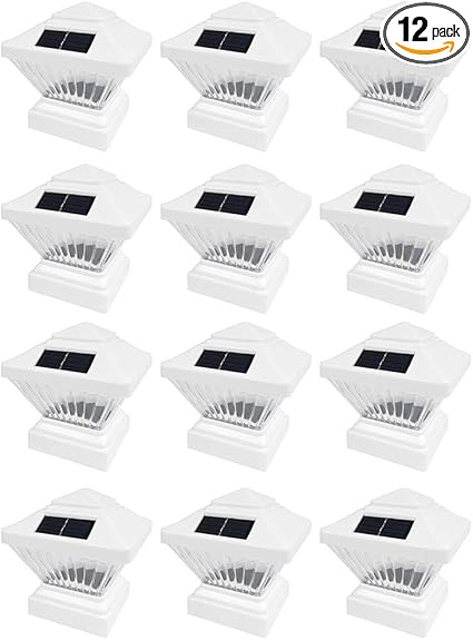 12 Pack White Solar LED Post Cap Lights for Garden and Deck