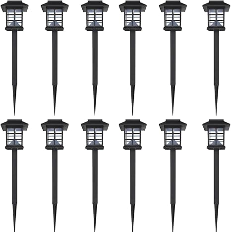 - Complete set of 12 solar lights includes tubes, ground spikes, and rechargeable batteries for easy installation.