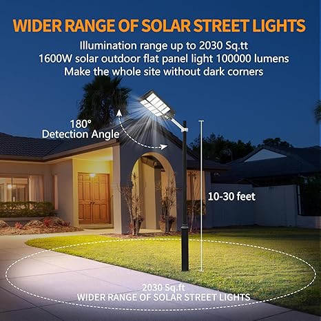 - [ WIDE ANGLE LIGHTING] — The motion sensor outdoor lights are designed with two-way 45 degrees wide-angle lighting, which can provide a wider range of lighting and brighter light compared with ordinary street lights. Illumination area up to 2000-2200sq.ft, induction range: 20-26ft; lighten up Illumination blind spots. Escorting the safety of you and your family.