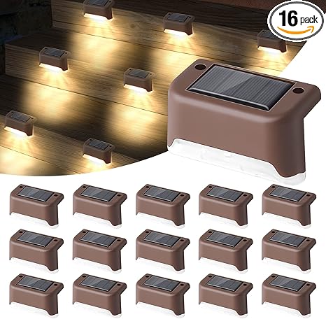 - 【WARM LED WHITE LIGHT Without DAZZLING】The 16 Pack Solar Step Lights offer Warm Light, just the right amount of light that illuminates your yard or steps which is safer for the whole family‘s activity at night without feeling the glare or disturbing the neighbors.