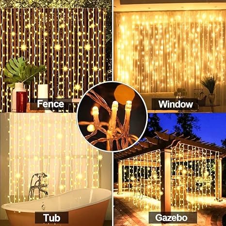 - 【IP65 Waterproof Curtain String Lights】Our curtain string lights are made of IP65 waterproof material, durable and not afraid of wind and snow, you can use it in evening to improve visibility, make it more warm and romantic alone or with friends/family at dusk or night. (Please do not soak in water for a long time)