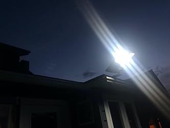 I mounted this light on the roof on the back of my house, and I really like how soft and diffused the light is. It keeps my backyard at an even dusk-level of light even in the middle of the night. This is hard to capture in pictures, unfortunately. It also doesn’t create a glare to invade my neighbors’ yards. The one downside of this light is that the solar panel and lights are fully integrated on the same panel. This is different than the two other solar flood lights that I have, which let you angle the solar panel differently than the angle of the light. So you can’t optimize this unit to catch light from one angle and shine light at another angle. I wasn’t originally planning on using this in my backyard – I wanted to light my front steps – but if I pointed the light in that direction, the solar panel would be partially blocked by my roof. It worked out ok in the end because I like it in my backyard, but before you buy this, make sure that the angle works for you. There are other solar floodlights that let you put the light and the panel on different tilts … or even separated by a cord. Overall, if the angle thing works for you, this is a really great light that is easy to set up and produces a nice soft light without glare.