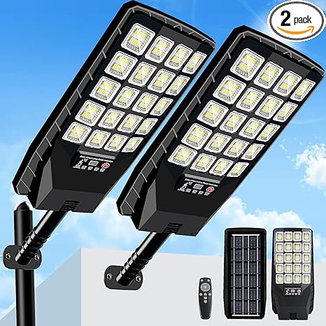 - Intelligent Remote Control & Multiple Modes : The solar street lights outdoor has photosensitive control technology and 4 working modes,Mode 1: Dusk to dawn, automatic charging during the day, automatic lighting at night.Mode 2: Motion sensor, maintains 30% illumination, increases to 100% brightness when motion is detected, returning to 30% after 30 seconds.Mode 3: Brightness adjustment, offering 25%-100% brightness adjustment in 4 levels. Mode 4: Timer setting: provides different timing settings of 2H/3H/5H/6H/8H.Remote control enables automatic operation