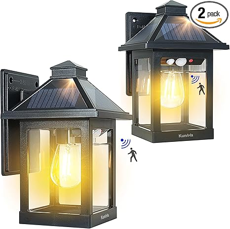 - Ultra Bright Solar Motion Sensor Lights: Kuniwa upgrade solar wall light with the 3 solar panels design, equipped with super bright LED double wick, produce up to 200lm 3200K super brightness output and perfect heat dissipation, which is brighter than other similar LED wall lights. The conversion rate of our upgraded polycrystalline silicon solar panels is as high as 20%. Incredible photocell efficiency, also working great in winter