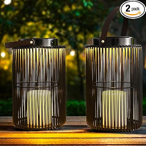 - 【Solar-Powered and Portable Design】- The outdoor lanterns are powered by efficient solar panels, ensuring eco-friendly and cost-effective lighting. To maximize their performance, simply charge the lanterns for 6 hours in direct sunlight, providing enough power to illuminate your space throughout the entire night. (For optimal performance, please fully charge the lanterns in direct sunlight before first use.)