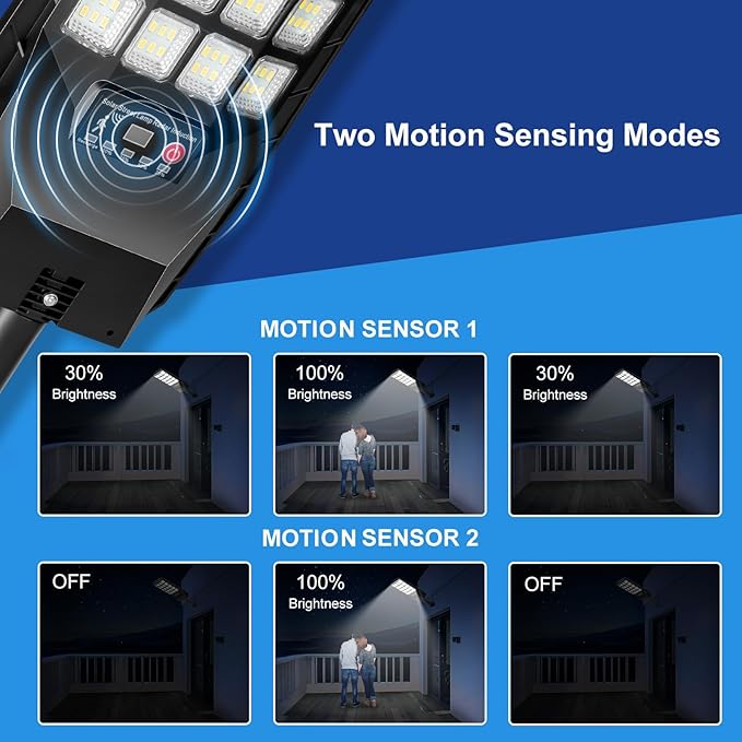 - [4 Lighting Modes] 1) Motion Sensor 1- Bright light when motion is detected while dim light when no motion; 2) Motion Sensor 2- Bright light when motion is detected while no light when no motion; 3) Auto Mode- Steady lighting for about 5 hours regardless of motions ; 4) Timing Mode-Steady lighting for 3/4/5 hours regardless of motions