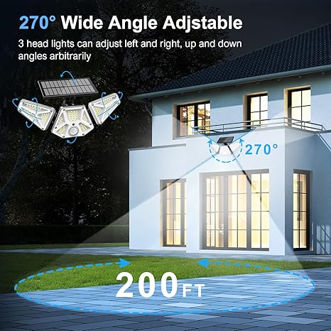 2000LM Solar Motion Sensor Light – 3-Head Waterproof LED Flood Light