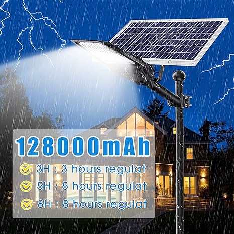 - ● ● ● High-efficiency solar panel: High-quality 2000W LED solar flood light uses up to 24% high conversion efficiency monocrystalline solar panel and 148000mAh ultra-large capacity battery, After 6-8 hours of charging, working time is up to 20-30 hours.