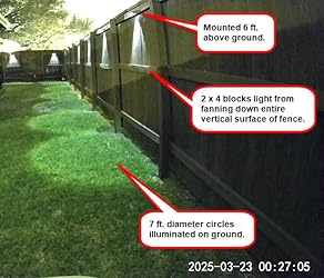 I installed these along my back fence to provide a soft light at night. I set them to the warm light and that is enough to see the dogs as they walk along the fence line, etc. They stay lit throughout the night and did not falter at all after a rainy day.
