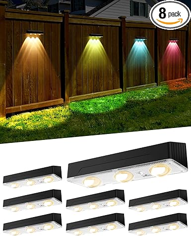 - 【Auto On/Off & Efficient Charging】Equipped with an auto on/off feature, the outdoor fence lights automatically turn on at dusk and off at dawn. With upgraded 25% improved charging efficiency, just 5 hours of sunlight provides a full charge, delivering 30+ hours of continuous operation. Enjoy hassle-free, energy-saving lighting all night long!