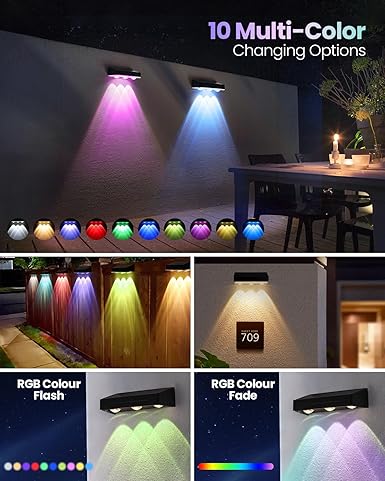 - 【Upgraded 5H Sun = 30H Runtime】】The solar wall lights outdoor feature an advanced charging control chip and voltage that charges fully in just 5 hours of sunlight and can operate continuously for up to 30 hours, providing efficient, and long-lasting outdoor lighting.