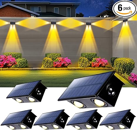 - Tri-sided Illuminated Fence Lights: This solar-powered fence lights feature prominent LED spotlights on the left, right, and bottom sides, offering a more comprehensive lighting effect compared to competitors that only illuminate from the bottom. Once lit, our lights ensure a more uniform and all-encompassing illumination on fence walls or railings.