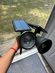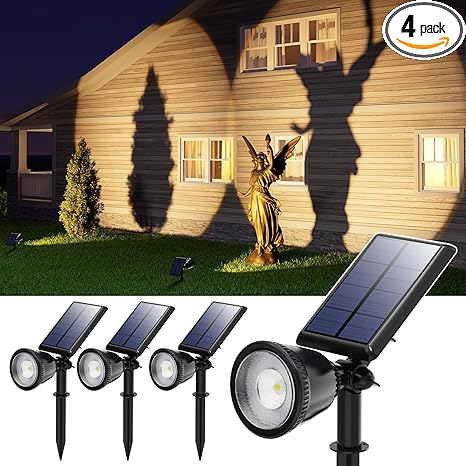 - Sharp-Focused Sunset Glow: Our solar spotlights feature a newly designed, high-quality, large circular glass lens, that produces intensely focused light with sharper edges, delivering a perfect sunset-like illumination.This design outshines similar-sized solar lights for more intense illumination.