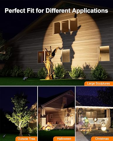 - Broader and Longer Lighting: Our solar uplights cover 35 feet, brightening flags at night. Adjustable for 2-20 feet beams, they effectively light large sculptures and create clear wall shadows for striking effects.