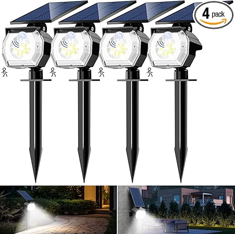 Illuminate your outdoor spaces with btfarm 4 Pack Solar Spot Lights! Waterproof, motion-sensor, and energy-efficient. Light up your yard today!