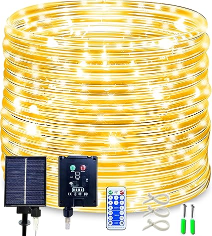 - 【IP65 WATERPROOF & PVC HOSE PROTECTION 】Outdoor decorative light strings and solar panels have IP65 waterproof rating, not afraid of rain and snow, so there is no need to worry about short circuit or unexpected power failure. The tube fairy light string is covered with PVC hose protective layer, which has better protection effect and can prolong the service life of the light string.