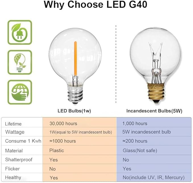 Prior to purchasing these lights, I was using regular string Christmas lights for backyard ambiance, only to have to replace them every other year due to the wind snapping the lines or the lights malfunctioning. Last fall I replaced all of my outdoor lights with these sets and LOVE THEM! They give off just the right amount of light and are super-durable. Although they are not used much over the winter, I did not take them down. We’ve had several heavy storms with high winds and there was no impact to the lights. They look great, too. Regarding the customer service… I noticed when I started using them again recently, since no use over the winter, that a few of the bulbs were either out or were very dim. I called the company, they gave me a few trouble shooting tasks to better identify the specific issue, and quickly sent me out, at no charge to me, replacement bulbs! My interactions with the company, both in writing and on the phone, were very positive. I found them to be friendly, courteous, and quick to find a resolution. Great customer service. I would definitely order from this company again. The lights are fantastic!