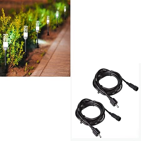 - Extension Cord: 2 Pack 2m/6.56ft extension cord for GreenClick landscape lighting spotlights( B07RTHF8YK, B075T636RM) and led path lights(B0763RV7PC, B083SBZ3NY). It is recommended that the connected extension cable should not exceed 39ft, or the long cable will weaken the current and reduce the brightness of the light.