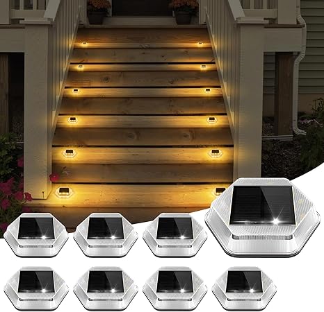 Bright and reliable, these solar deck lights offer excellent illumination with auto on/off functionality. Waterproof and durable, perfect for enhancing outdoor spaces with warm white ambiance