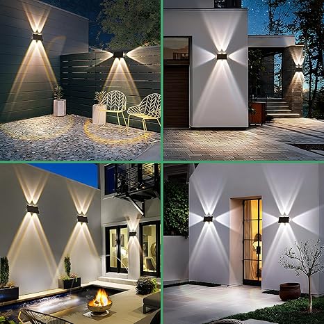 - Four Adjustable Lighting Modes: Customize your outdoor lighting with four versatile modes to suit different needs; Mode One (upwards+downwards) highlights walls and fences to create a welcoming ambiance; Mode Two (sideways) lights up walkways, paths, and railings for safety; Mode Three (sideways + downwards) broadens coverage over gardens and patios; Mode Four (four-way) provides full illumination for larger outdoor areas, offering flexibility for various lighting scenarios