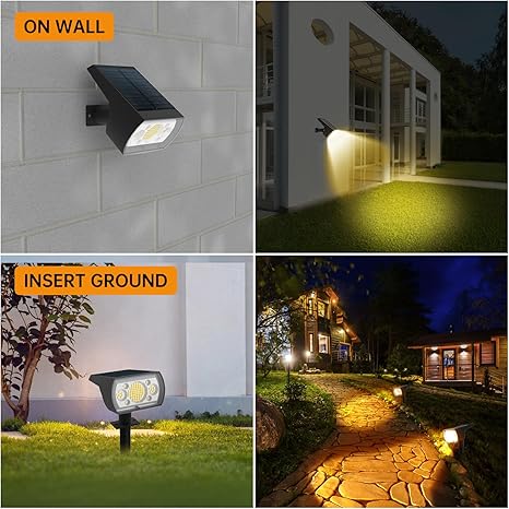- IP66 Solar Garden Lights: Using ABS+PC high-strength material, can work under -20℉~60℉. The IP66 waterproof rating allows the solar spotlight to withstand all kinds of bad weather such as rain, snow, wind frost, high temperature, etc. It is perfect for outdoor use! Anti-fogging design – can perfectly solve the problem of fogging of the solar lampshade, keep the light intensity and prolong the service life.