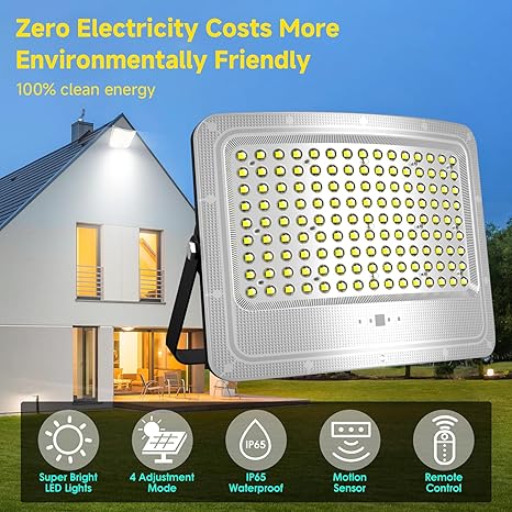 - 【Zero Electricity Costs】Fully solar-powered—no energy bills! Charges fast, reaching a full battery in just 5-8 hours. 3 Key Features of Our Outdoor Solar Flood Light Panel:Extra-Large Size: 2X bigger than standard panels for greater power capture. All-Weather Durability: Reinforced, corrosion-resistant casing stands up to harsh conditions. 3.25% Energy Conversion Rate—beats the industry average of 19%.