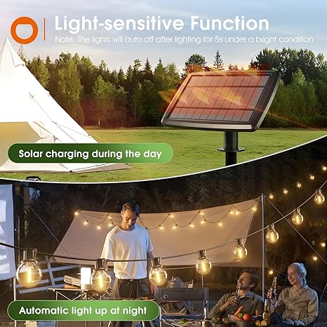- Automatic Day-Night Operation : The solar panels with our built-in light sensors. These smart sensors automatically turn the lights on at dusk and off at dawn, so you never have to worry about remembering to switch them. Enjoy a beautiful glow that seamlessly transitions from day to night, enhancing your outdoor lighting with zero effort.