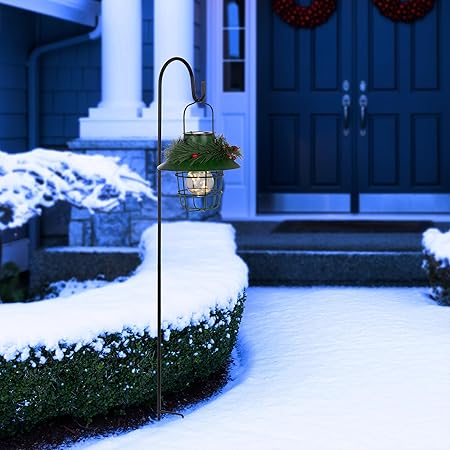 - VINTAGE-STYLE HOLIDAY LANTERN: Stylistic green lantern with holiday greenery accent and included shepherd’s hook
