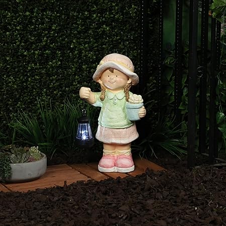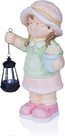 Alpine Corporation Young Girl Lantern Statue with Solar LED Lights 17″
