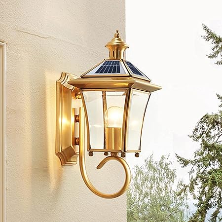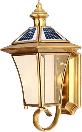 Antique Solar Lanterns for Outdoor Garden Rustic Brass Wall Lamp Waterproof