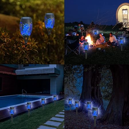 AOUNQ 8 Pack Waterproof Solar Torches with Flickering Flame Lights