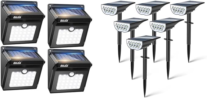Illuminate your outdoor space with BAXIA TECHNOLOGY’s solar motion sensor lights! Get 28 LED lights & 6 spotlights—perfect for security and style. Order now!