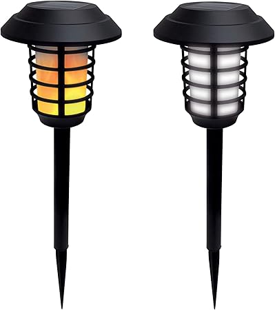 - 2 MODES WHITE LIGHT AND FLICKERING FLAME –our 2-in-1 patented functionality has 2 options, bright white light to illuminate your pathways and garden or a realistic flickering flame light that creates a warm ambience perfect for hosting parties and more!