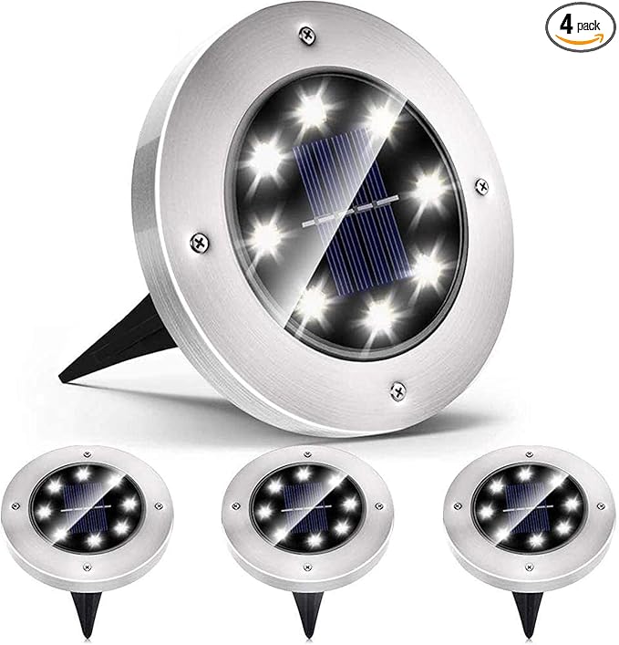 Biling Solar Disk Lights 4 Pack Waterproof LEDs for Outdoor Use