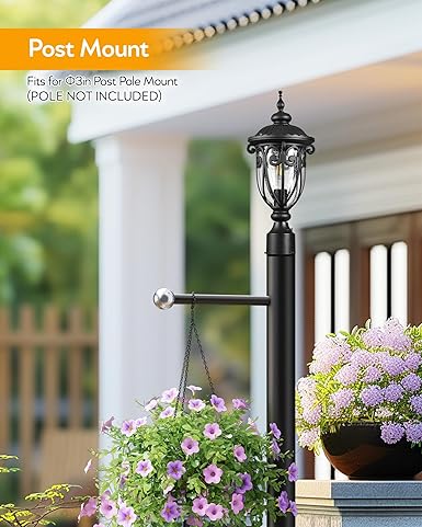 - ✨【Two Mounting Options and E26 Base】The lamp posts outdoor lighting includes a 3-inch mounting base for easy mounting on a flat surface, in addition, this post light can also be used on the top of a pole with an outside diameter of 3 inches. You can choose between two mounting options according to your preference, our outdoor post light is suitable for all types of E26 base bulbs up to 100 watts. (bulb not included).