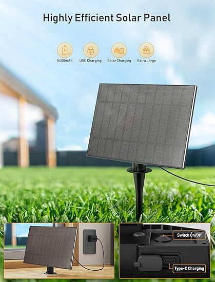 - High-Efficiency Solar Panel: The 9.5 x 6.3 inch monocrystalline silicon solar panel ensures high conversion efficiency. With 3 x 1800mAh AA batteries and 5w power, the C9 lights last up to 10 hours in good weather and remain reliable in winter