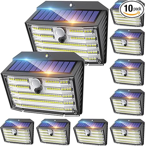 - ☀𝐔𝐥𝐭𝐫𝐚 𝐁𝐫𝐢𝐠𝐡𝐭 & 𝐀𝐜𝐜𝐮𝐫𝐚𝐭𝐞 𝐏𝐢𝐫 𝐒𝐞𝐧𝐬𝐨𝐫: This solar security light is equipped with 126 upgraded high-power SMD2835 LEDs beads, which can produce high-brightness output of up to 800 lumens and 6500K. It has a built-in 1200mAh rechargeable battery and a high-efficiency solar panel, ensuring charging even on days with insufficient sunlight. Built-in sensitive light sensor and PIR inductor, the sensor motion light can easily capture the movement of small dogs. After detection, the solar fence light will cover a large space with gradient lighting, without scaring your pets. It is very suitable for taking care of your dog while walking in the garden at night.