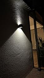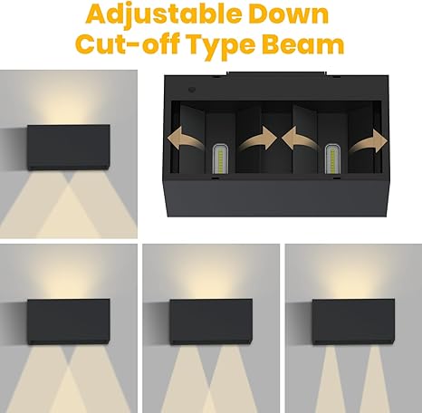 - Light Cutting Effect: Commendable Light Cutting Effect. The solar wall lights with adjustable down beam, Up lights at symmetrical 22°, adjustable down cut-off type beam allows you set the angle of down lights freely, the beam shape controlled by yourself. The whole height of irradiation is 2.5m(up and down light)