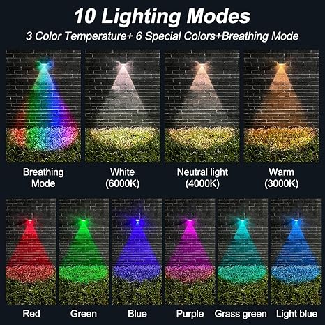 - 【Fence Lights with 10 Color Modes】Ellasay solar garden lights feature 10 customizable light modes:6000K/ 4000K /3000K, 6 vibrant color modes, and RGB cycling mode. Perfect for outdoor spaces like fences, yards, and gardens, also ideal for festive decorations during Halloween, Christmas, parties, birthdays, and weddings, adding vibrant colors to your home.