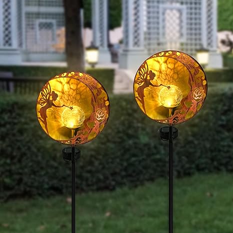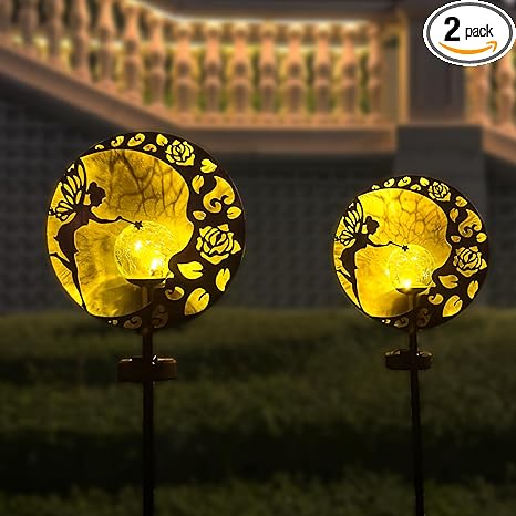 - FAIRY DECOR:Profinella’s fairy solar light are designed specifically to enhance your courtyard decor. At night, the fairy’s wand points toward a glowing crackle glass ball, and the warm light, after reflecting off the high-gloss golden paint inside, appears even brighter.This warm visual effect transforms your garden into a captivating scene