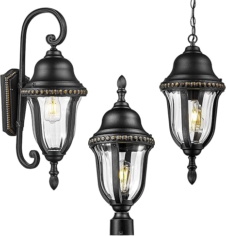 - Timeless Design: With a sleek matte black finish and an olive-shaped thickened striped glass shade, this Outdoor Pendant Light offers a classic look. For a cohesive outdoor lighting design, pair it with matching post lights and wall lights from the same series. Whether you need a solar or waterproof option, this pendant light seamlessly complements any exterior décor.